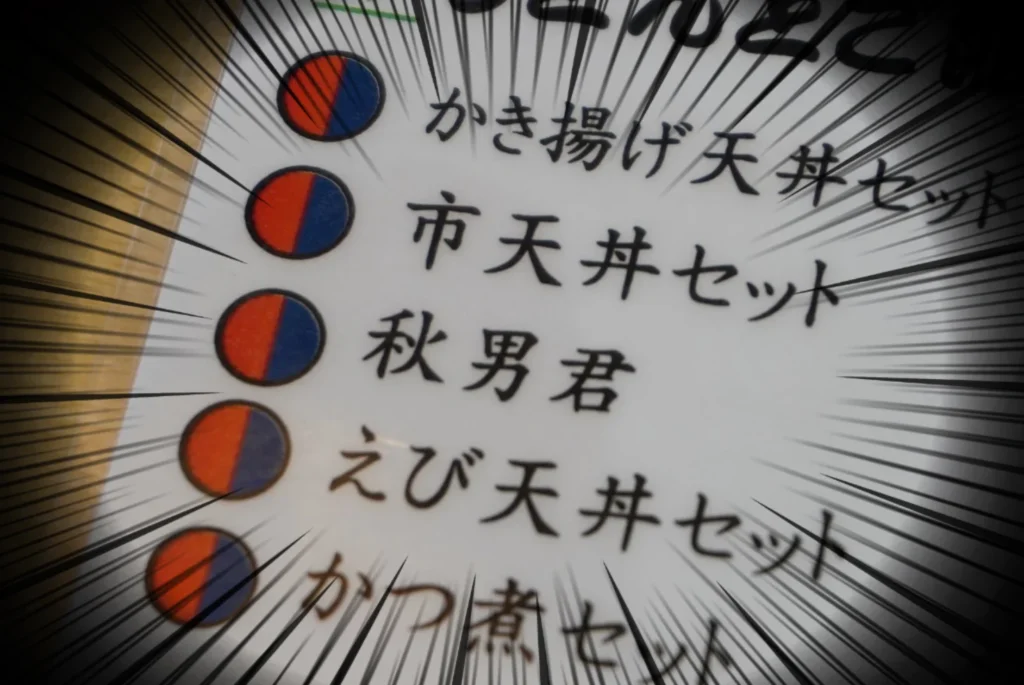 うどん市に「秋男くん」という謎なメニューがありました。