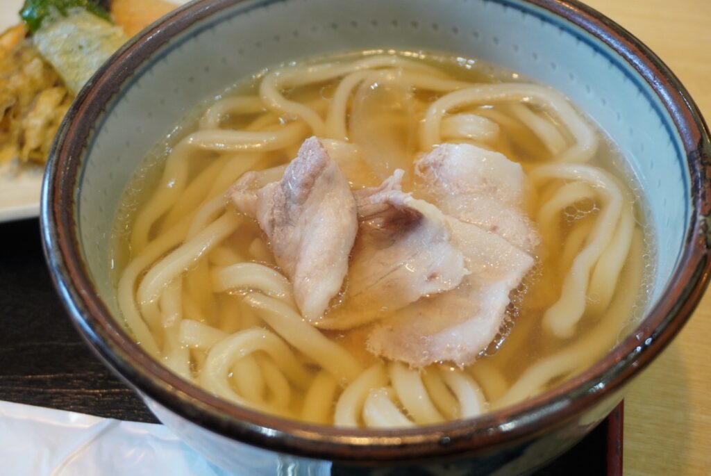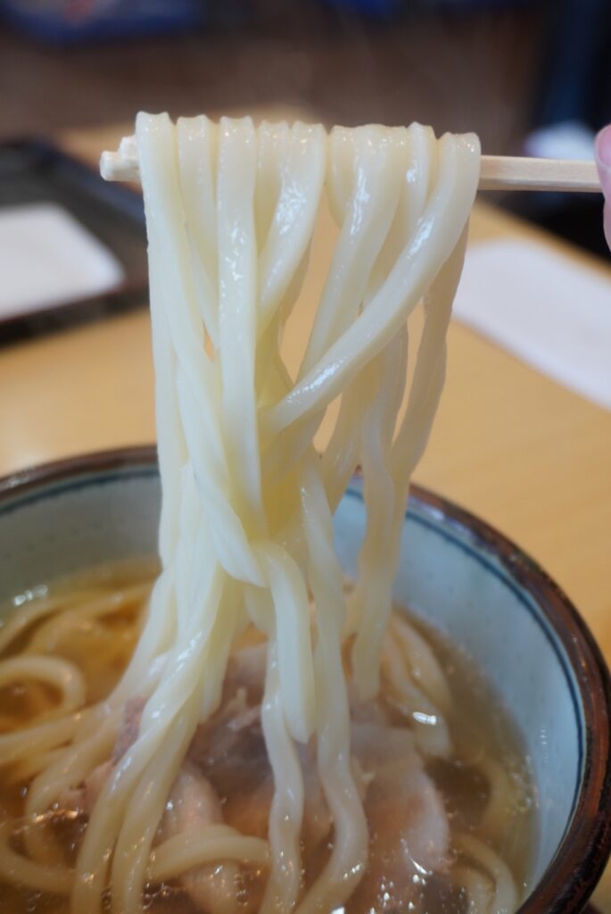 醤油感の強い東日本のうどんツユとは違い、透明感のある関西風のツユにつるりとした喉ごしが印象的な讃岐うどんがマッチ。