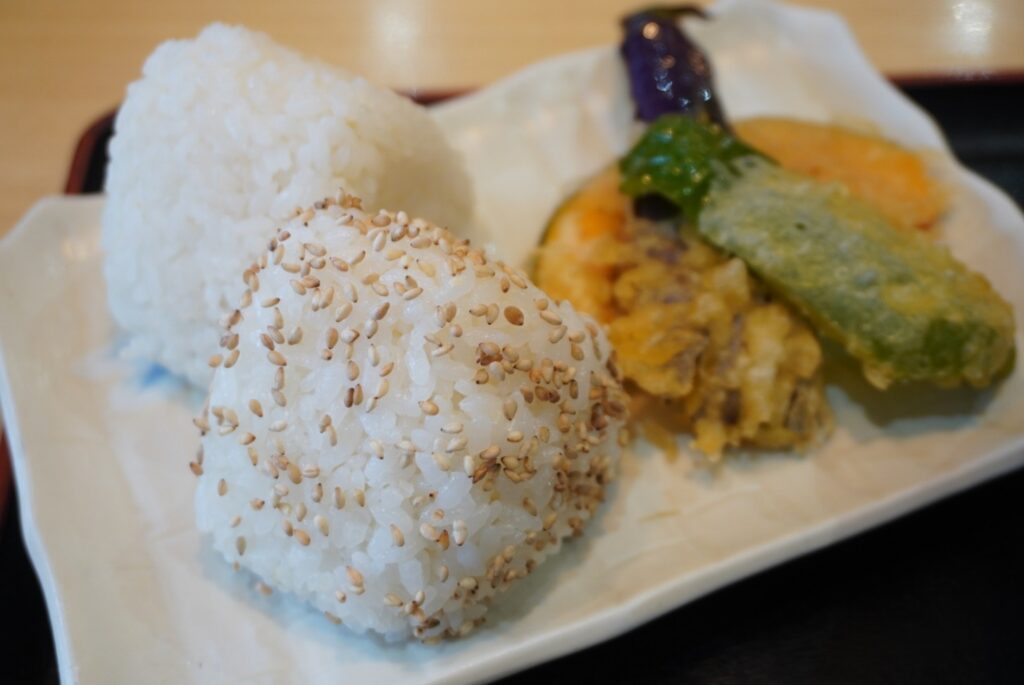 庄内産(朝日村)のお米を使ったおにぎりは一口ほおばれば口の中でほろりと崩れ、同時にお米の芳醇な甘みがじゅわ〜っと広がる。