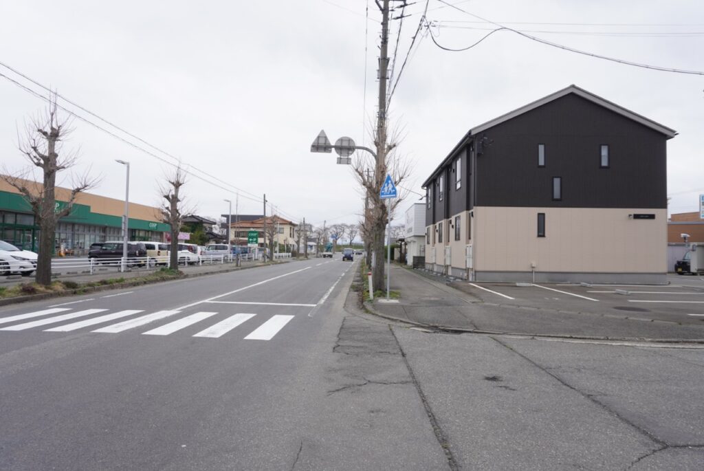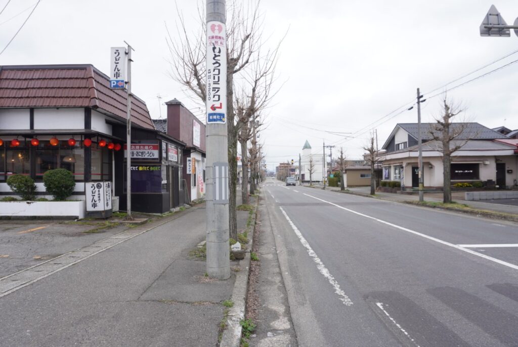 お店を正面に見て右側は鶴岡東高校・昭和通り方面↓