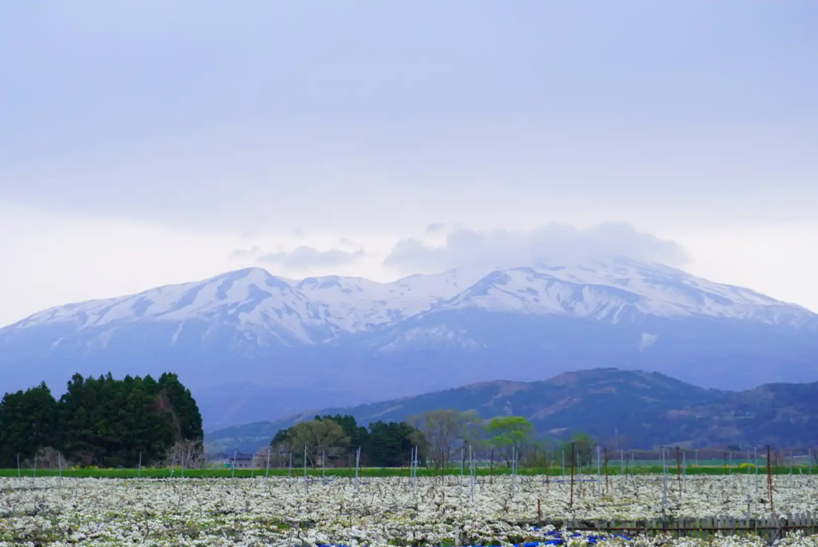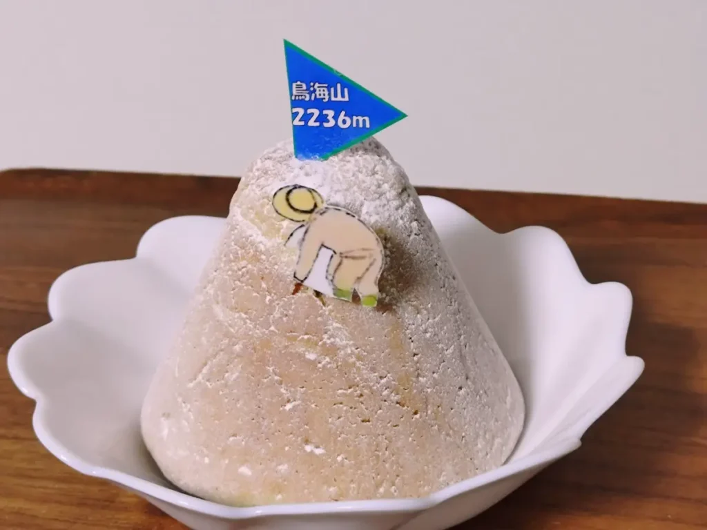 頂上は白い粉砂糖で雪化粧し、2,236mの標高ピックと、庄内に春を告げる雪形「種まきじいさん」がついていてかわいい~!