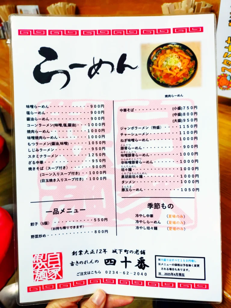 酒田市の東側、歴史ある城下町の松山の城址近くに、大正時代創業のながーい歴史を持つラーメン屋さんがあります。