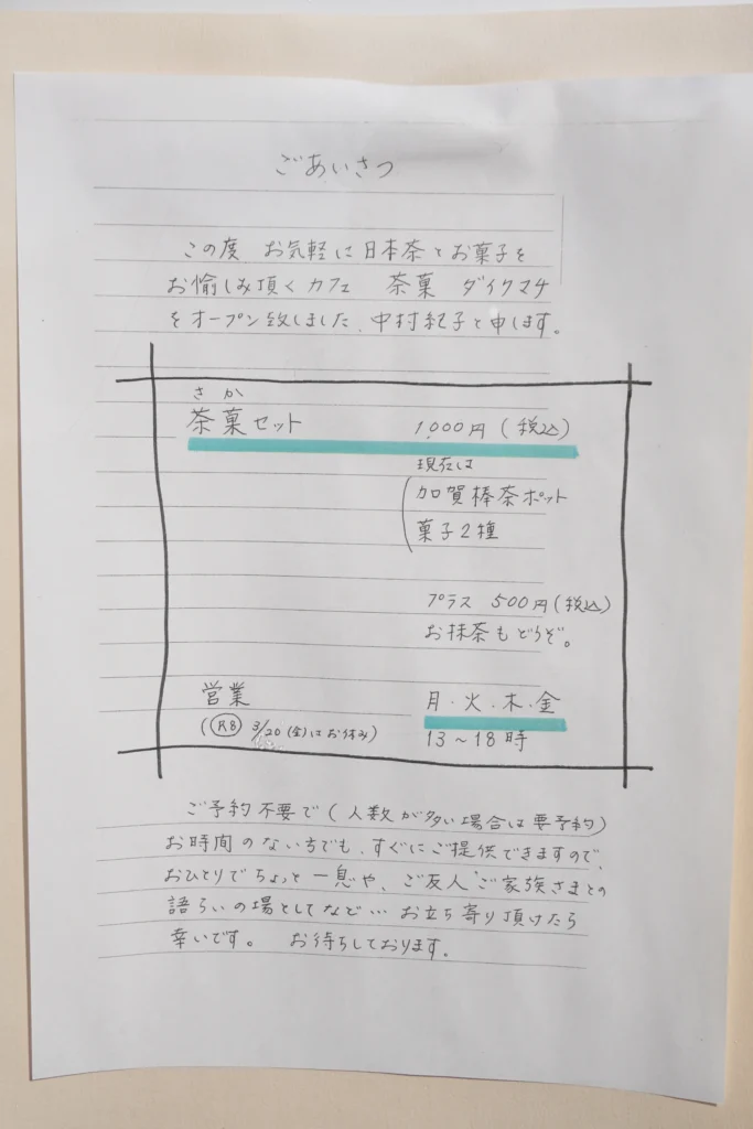 両親の司法書士事務所が年齢のため畳んだ後、「ありふれた古い小屋でもできることがあるんじゃないか、活かして地域の人がふらっと立ち寄ってくつろげる空間にできるんじゃないか」と思い、リノベして「ダイクマチ」をオープンしました。