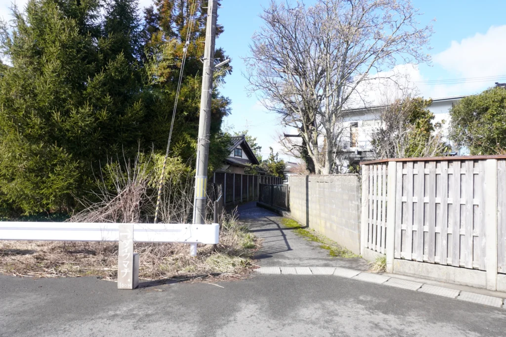 陽光町の住宅地の中、道路を挟んで向かいが一幸会の高齢者施設で、右に進むと南部保育園があり↓