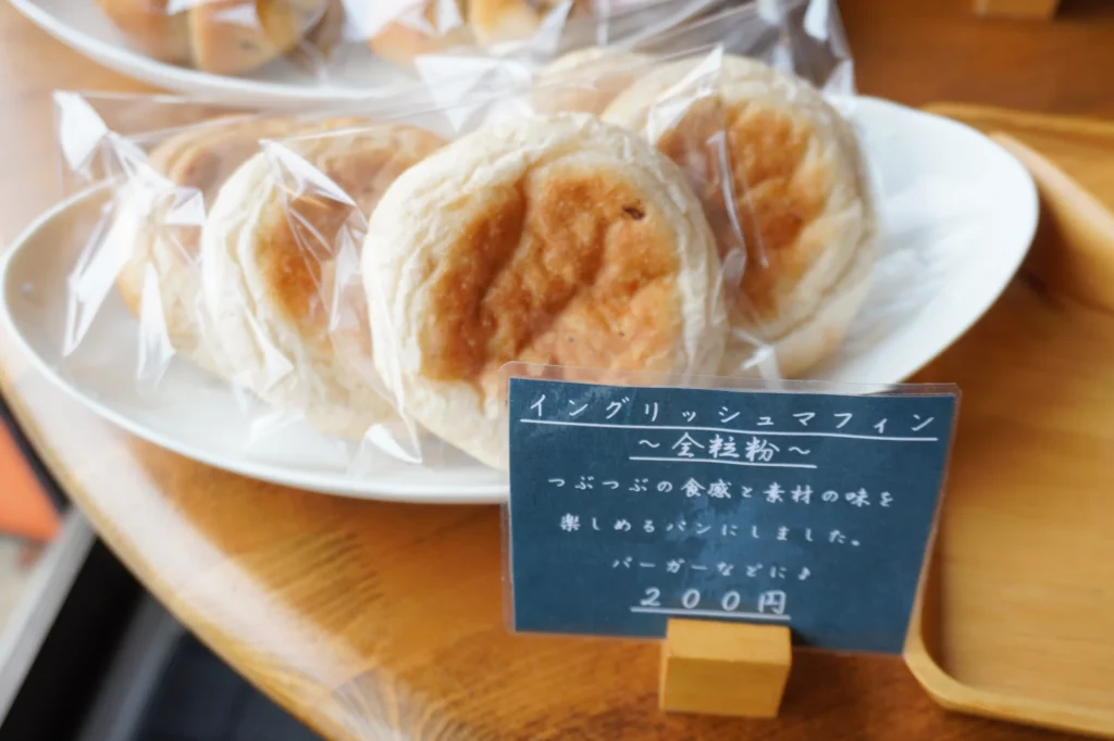 クランベリー&クリームチーズ入りのスイーツ系からイングリッシュマフィンなどの食事パン系まで、そのときどきによって変わる数種類が店頭に並びます。