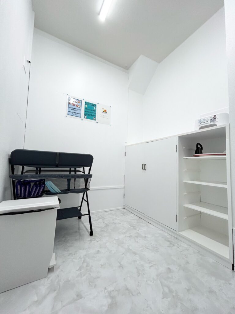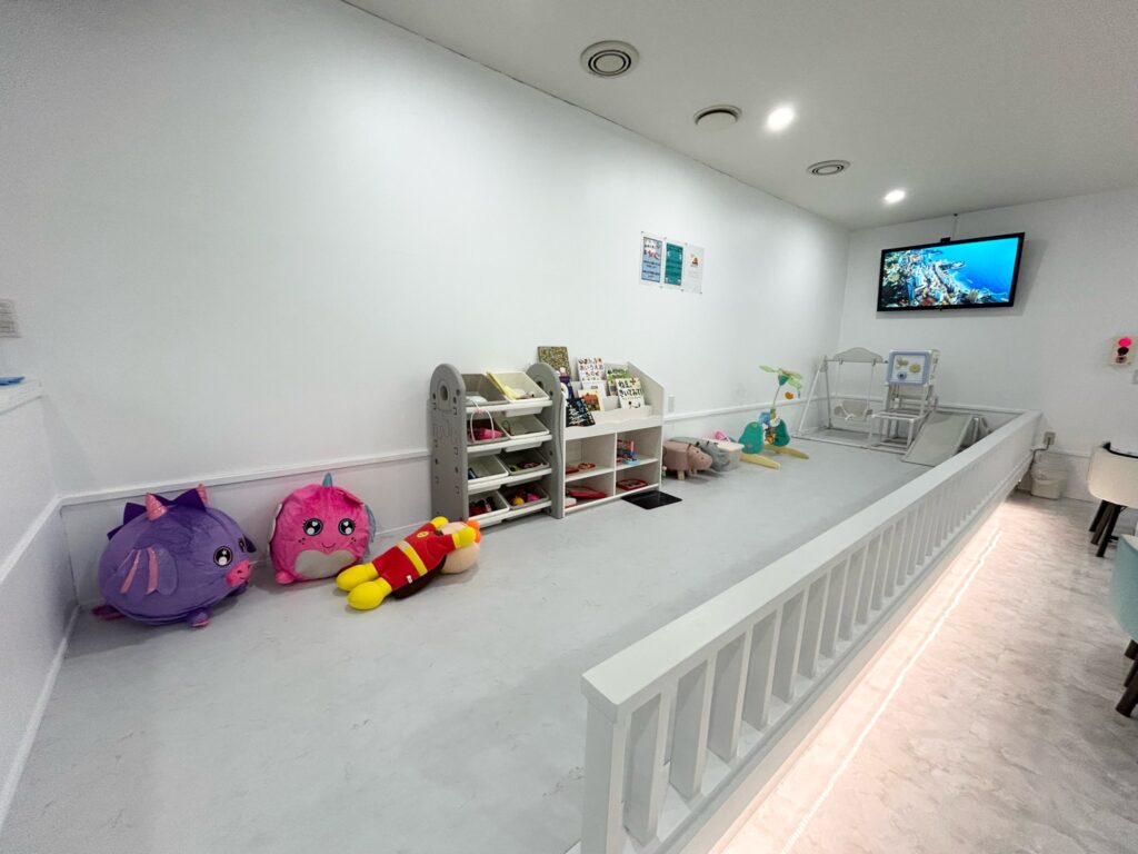 子育て世代が利用しやすい空間づくりにもこだわり、キッズスペースやおむつ替えスペース、子ども椅子を完備。