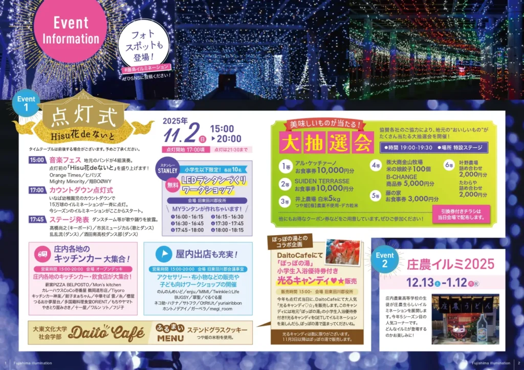 庄内最大規模「藤島イルミネーション」のシーズン到来! 11/2(日)の初日点灯式には音楽フェスやキッチンカーも!