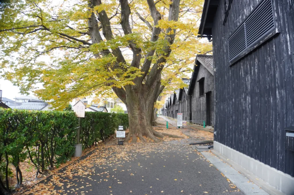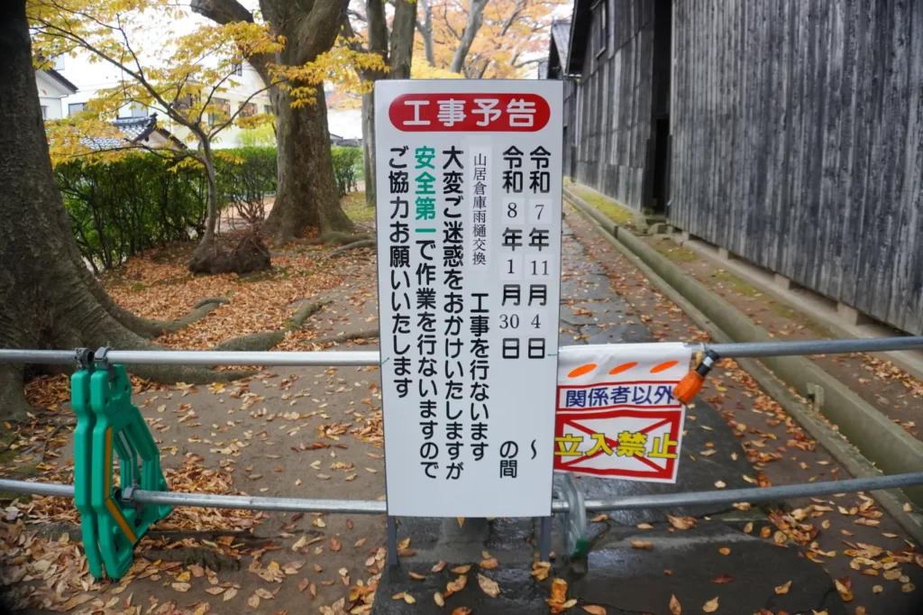 酒田の観光地「山居倉庫」脇のケヤキ並木が通行止め中。期間はいつまで?