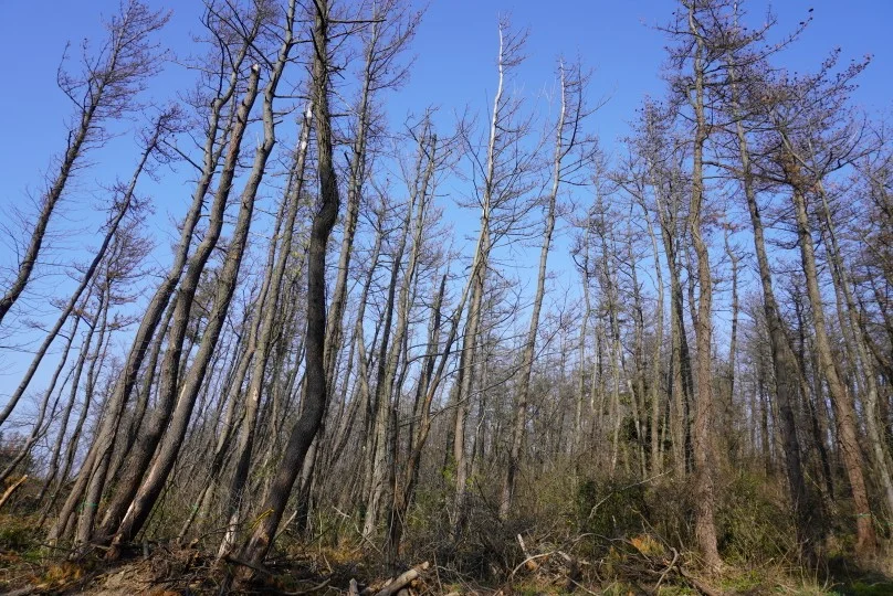 枯れたマツはもう元には戻らず、倒木の危険性や農業被害も出てるし、枯れ木にもまだ虫がいて感染を広げるので、いま大急ぎで伐っていますがそれでも追いついていない現状。