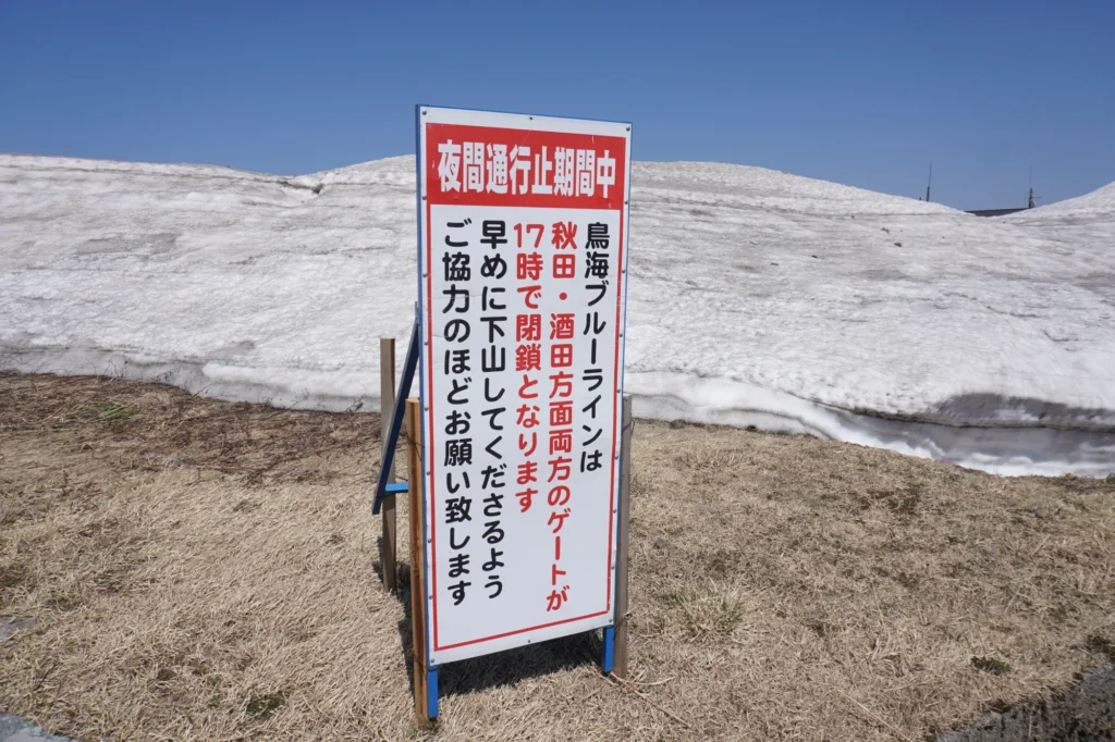 また鳥海ブルーライン全線開通後も、路面凍結のおそれのあるしばらくの間は夜間は通行止めとなります。