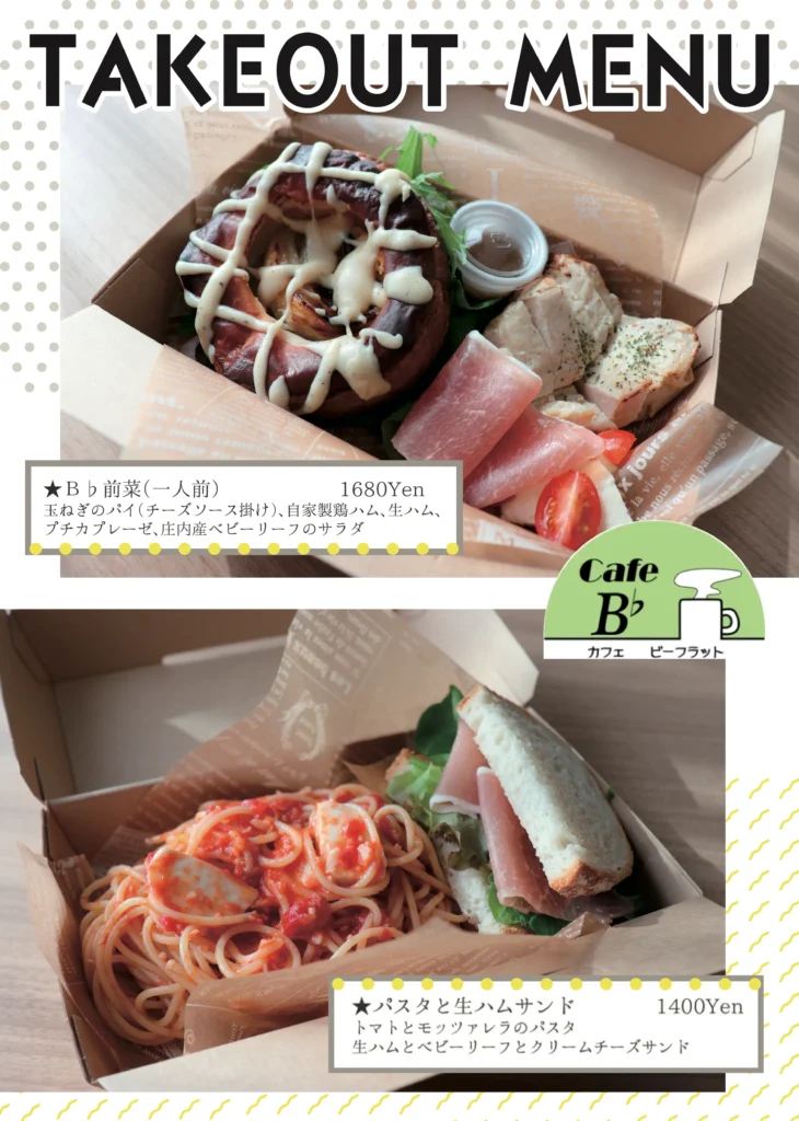 「Cafe B♭(カフェ ビーフラット)」で、食事メニューのテイクアウトが開始になったそうです!