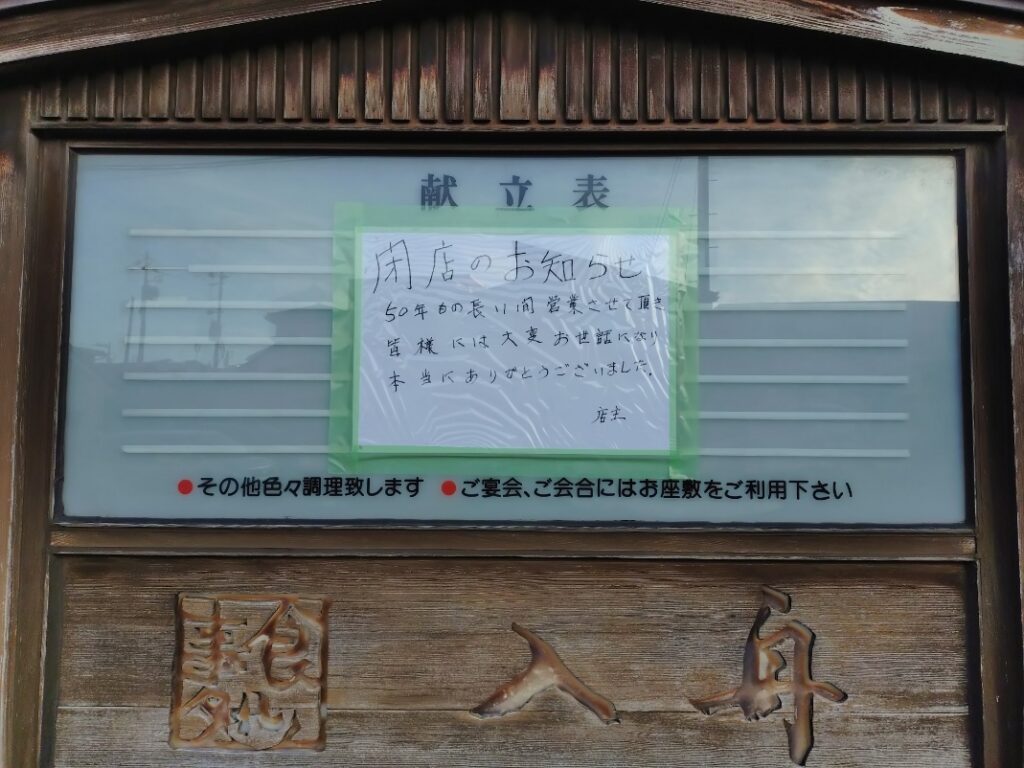 長期休業していた昭和通りの「入舟」さんが閉店したそうです
