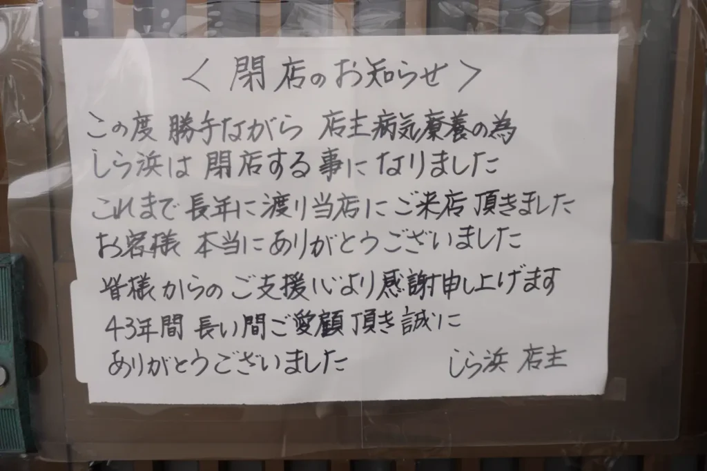 酒田市中町の居酒屋しら浜が閉店したらしいです