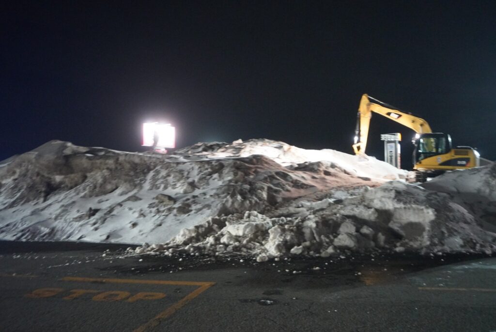 先日夜にマックスバリュに買い物に来たら雪山工事していました。