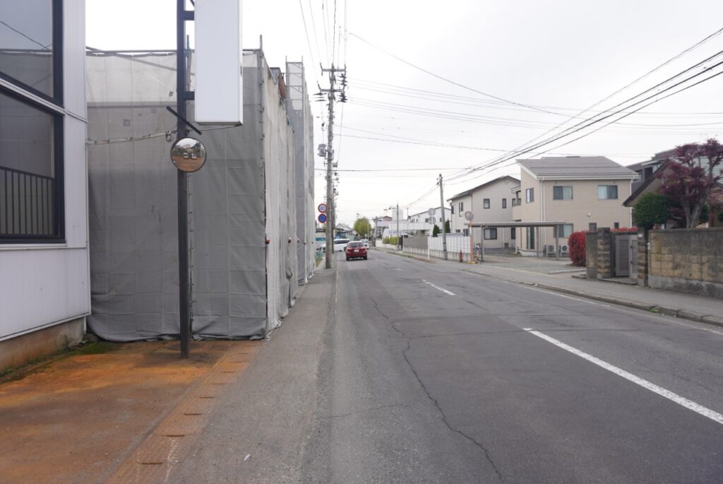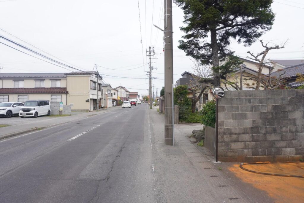 お店を正面に見て右側はセブンイレブン鶴岡美原店などの方面↓
