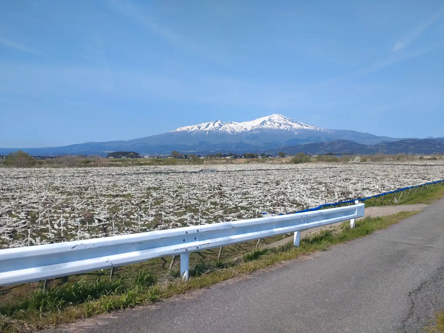 梨の花と鳥海山