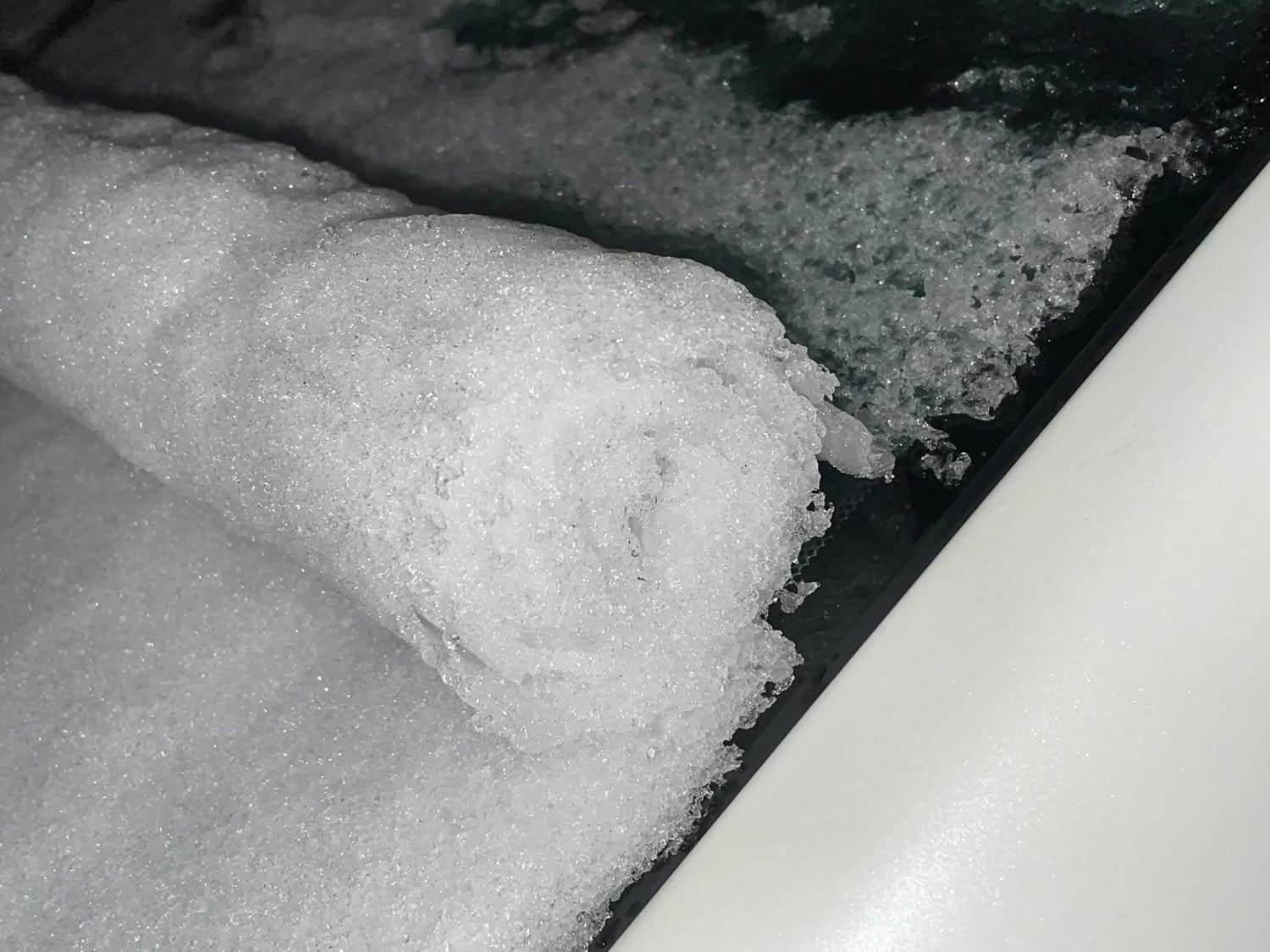 フロントガラスに雪が積もるの日常茶飯事の光景ですが…