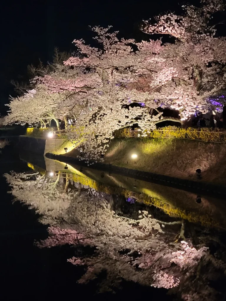 翌日は雨の予報。桜が散ってしまう前にと、仕事が終わってから夜桜を見に。