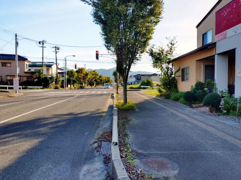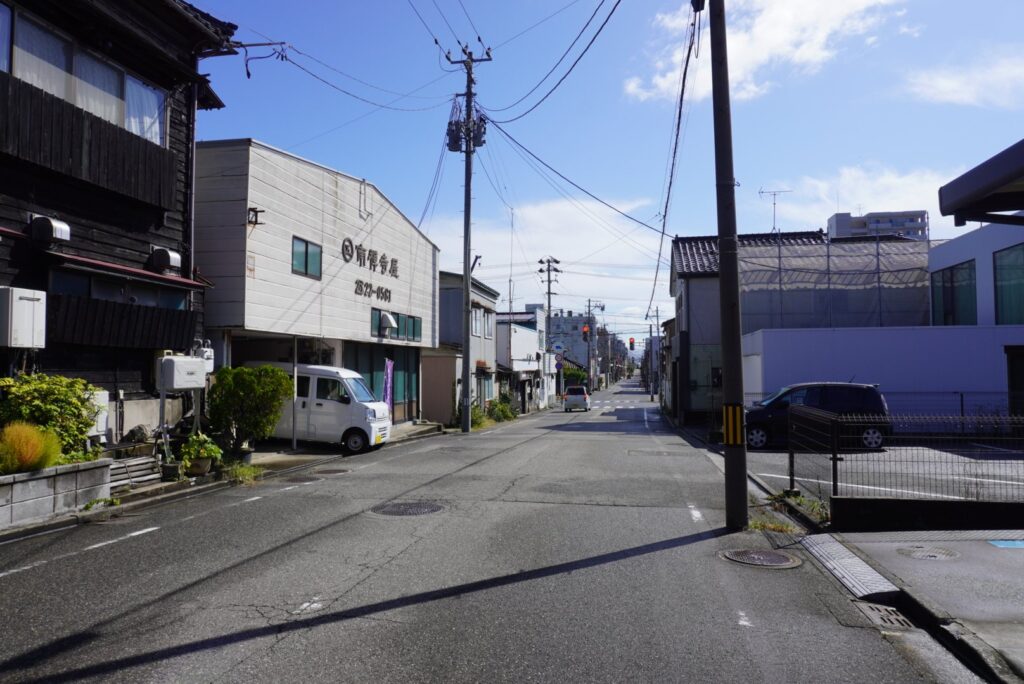 お店を正面に見て、右に進むとファミリーマートやたびのホテルlit酒田予定地方向↓