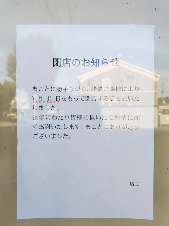 お店公式Facebookを確認したところ、閉店のお知らせがアップされていました。