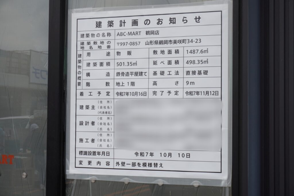 (多分内装工事周りの掲示と思われ)