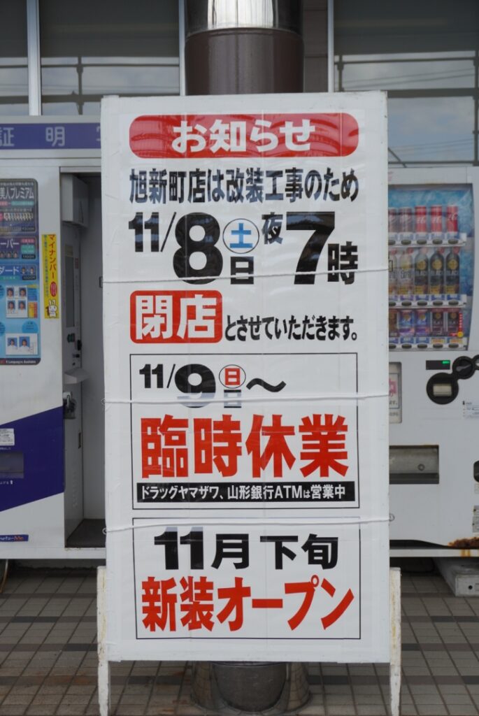 酒田市旭新町の 「ヤマザワ旭新町店」が改装閉店するみたい。時期はいつからいつまで?