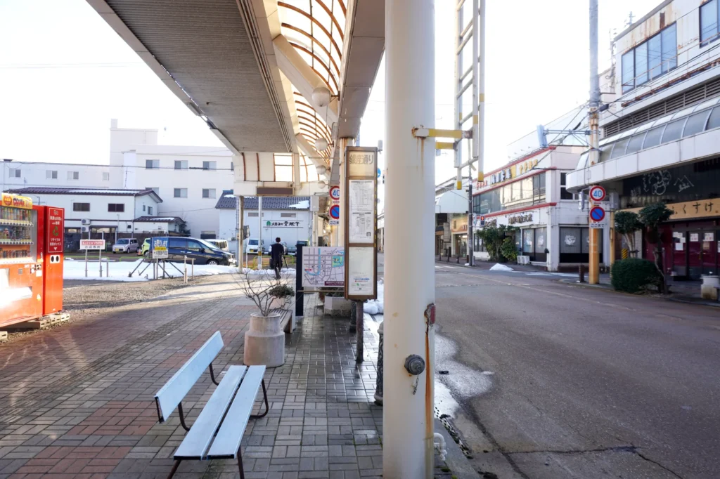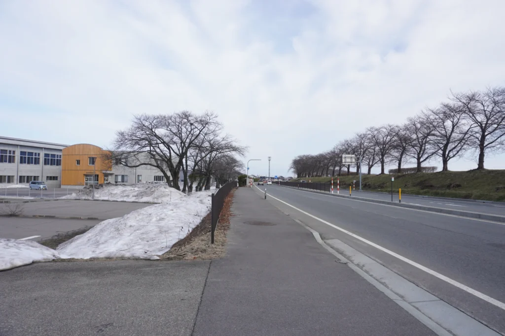 建物を正面に見て、右に進むと遊佐方向、イオンタウン酒田やコミックバスターがあり↓