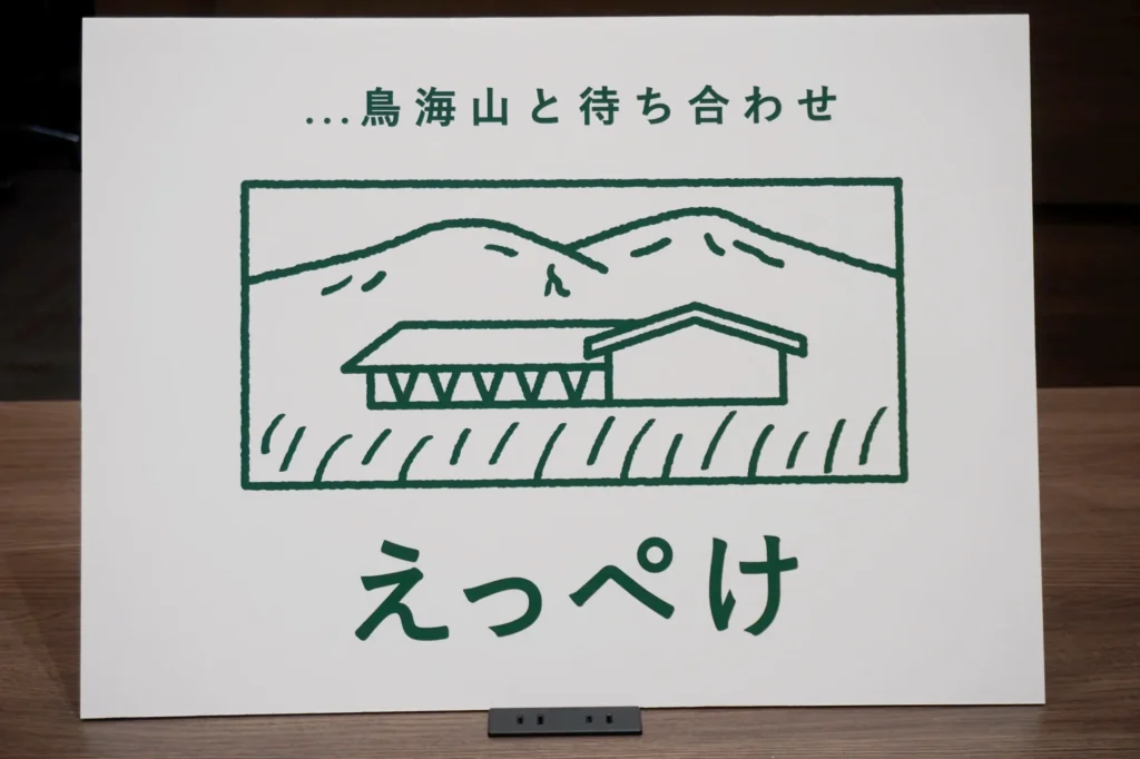 鳥海山と施設の風景に四角い枠がついているのは写真をイメージしていて、思い出に残る場所になってほしいとの思いが込められているとのこと↓