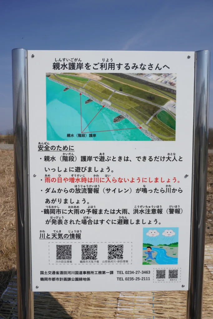 一連の工事は、鶴岡市が進めている水辺を活かしたまちづくり「鶴岡市赤川かわまちづくり計画」の一環です↓