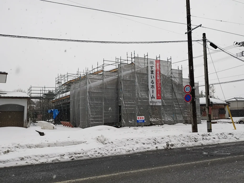 住宅……にしてはかなり大きいですし、しかし見える位置にはこの建物が何になるかの具体的な答えは見当たらず…。