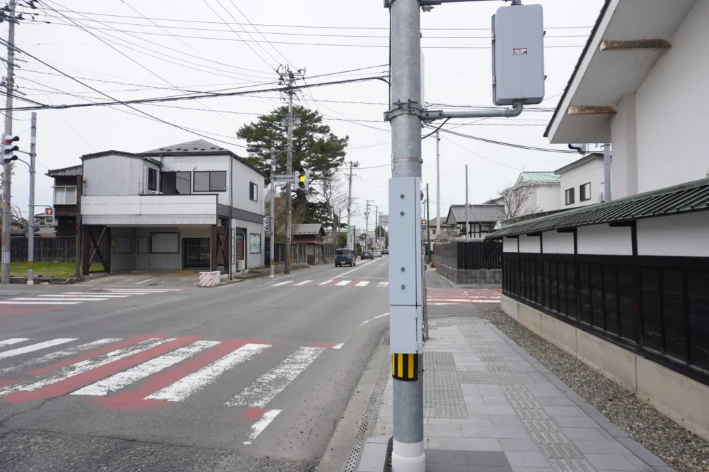 左に進むと市役所・羽黒方向、交番や鶴岡公園があります↓