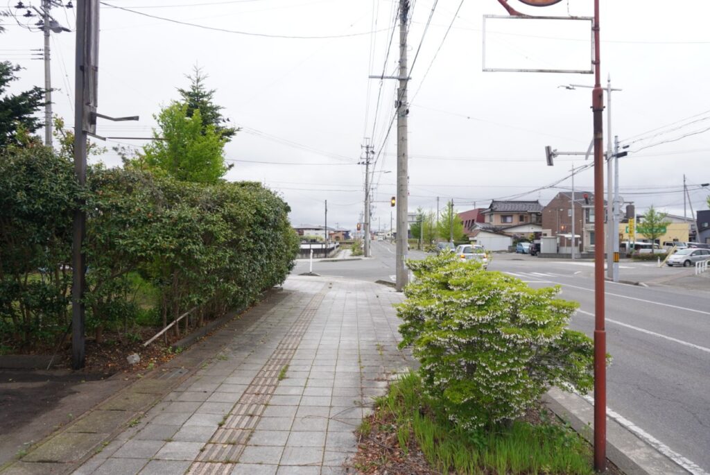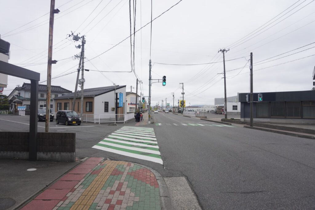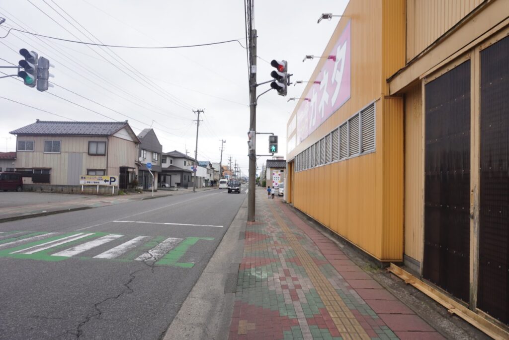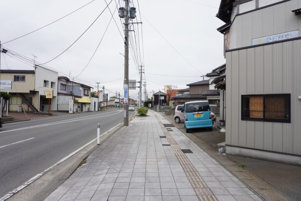 現地を正面に見て、右に進むと鶴岡市役所方向、つちとねさんや長浜輪業さんがあり↓