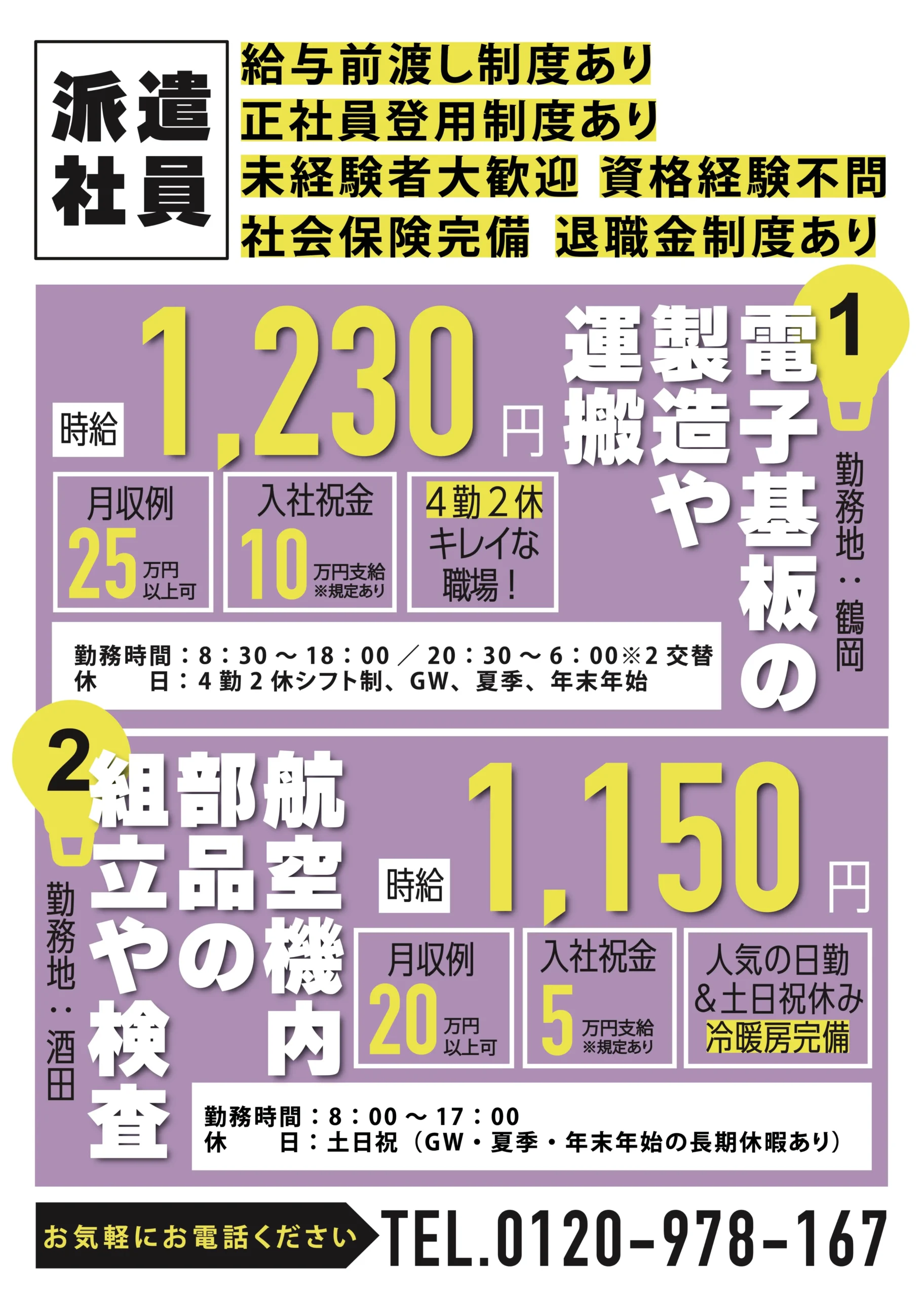 ①派遣:電子基板の製造や運搬