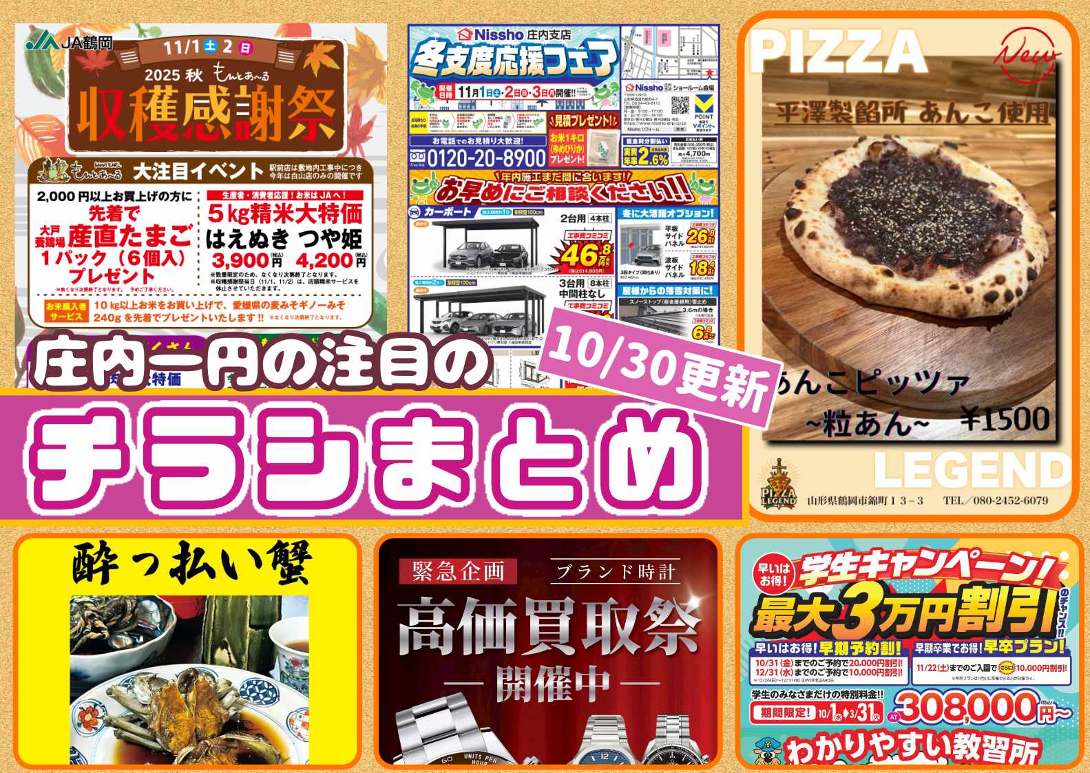 酒田・鶴岡と近隣の今週注目のチラシまとめ11/6号【ショーナイツウチラシまとめ】
