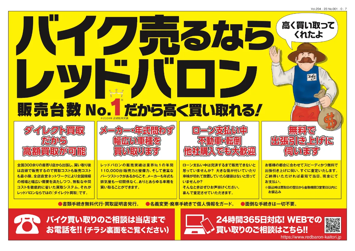 といったお客様も多くいらっしゃいますが、レッドバロンを選んで、お買い上げいただいたお客様だからこそ、手放す時もしっかりと対応いたします。もちろん、他社で買ったバイクも大歓迎です!