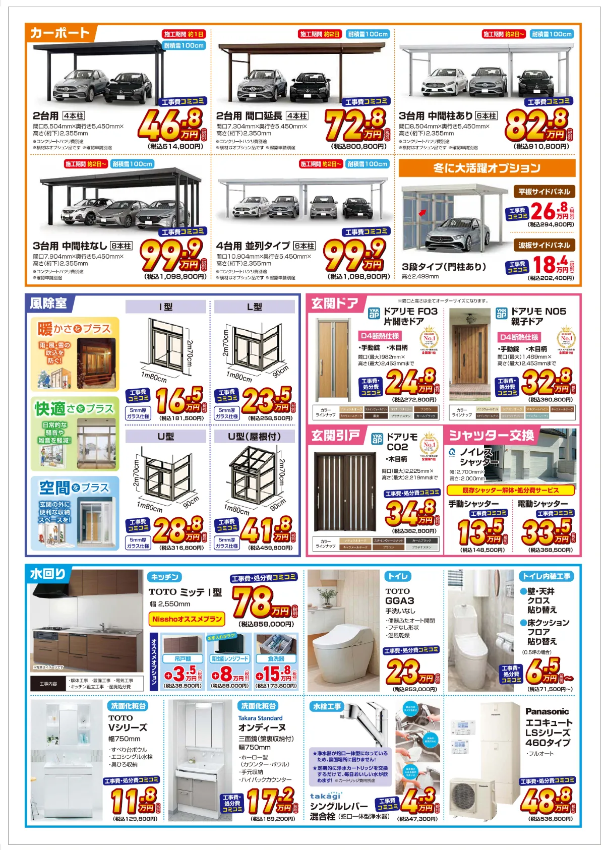 カーポートや玄関ドア、エクステリアから水回り・外構工事のことまで、