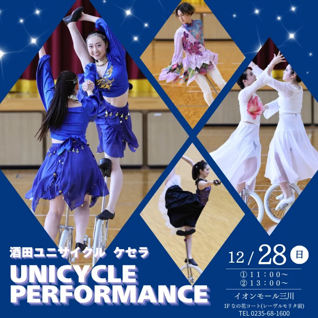 酒田市を拠点に活動する一輪車チーム「酒田ユニサイクル ケセラ」がイオンモール三川にやってきます。