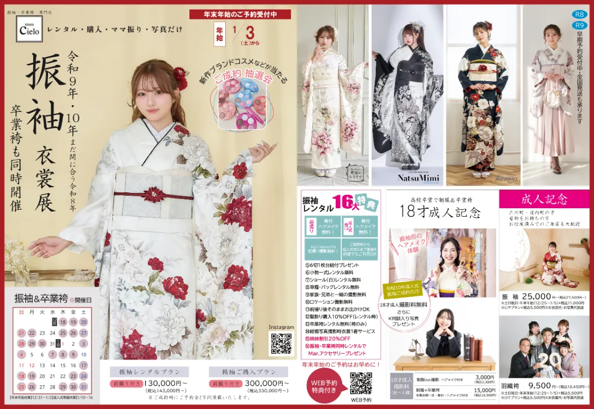 お正月にゆっくり振袖選び!【R9年/R10年/R11年】高校生早期予約は特典が盛りだくさん!