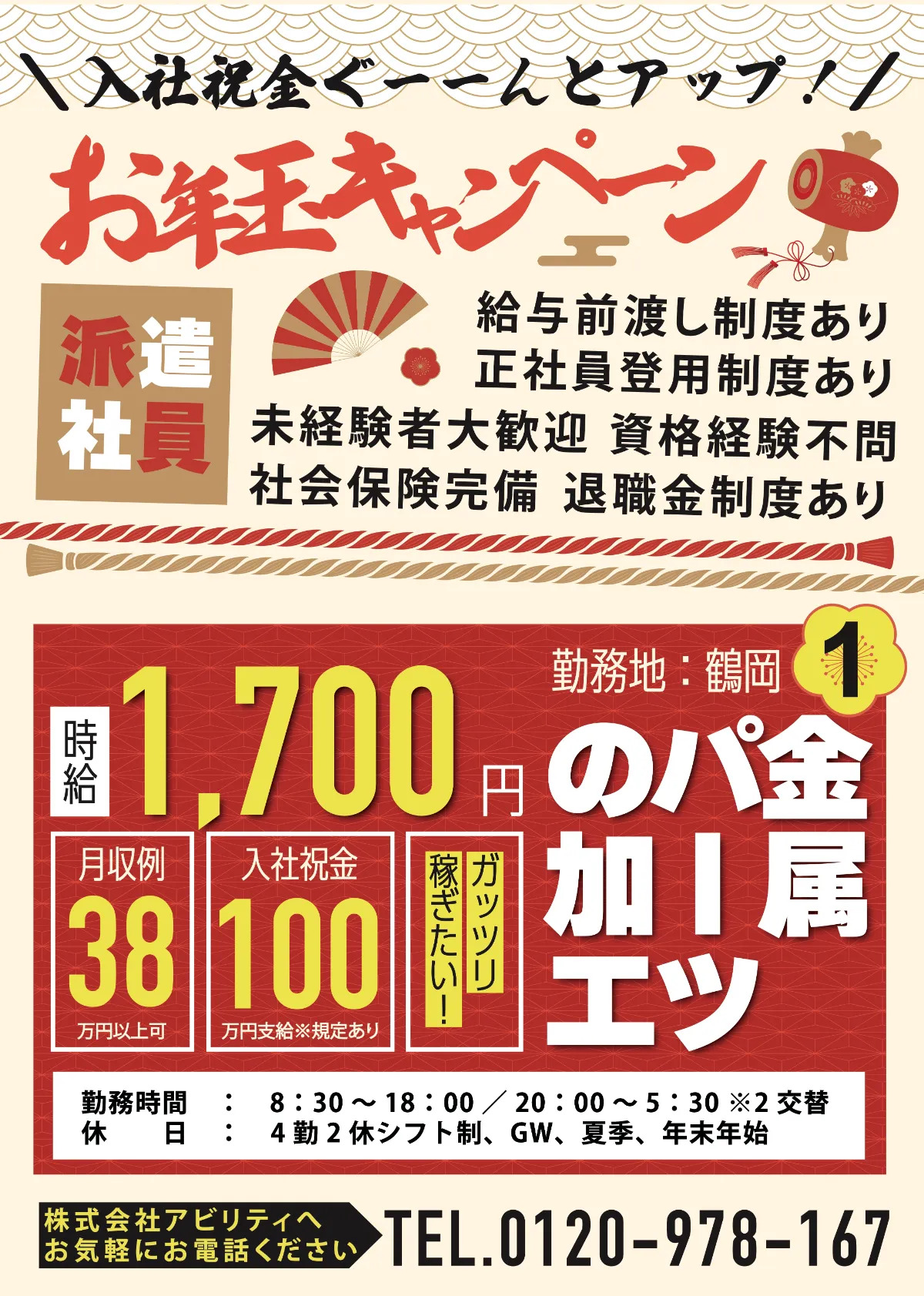 入社祝金ぐ〜〜んとUP!お年玉キャンペーン開催!