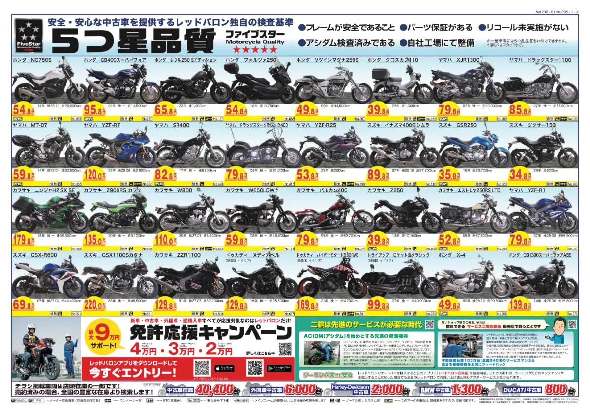 といったお客様も多くいらっしゃいますが、レッドバロンを選んで、お買い上げいただいたお客様だからこそ、手放す時もしっかりと対応いたします。もちろん、他社で買ったバイクも大歓迎です!