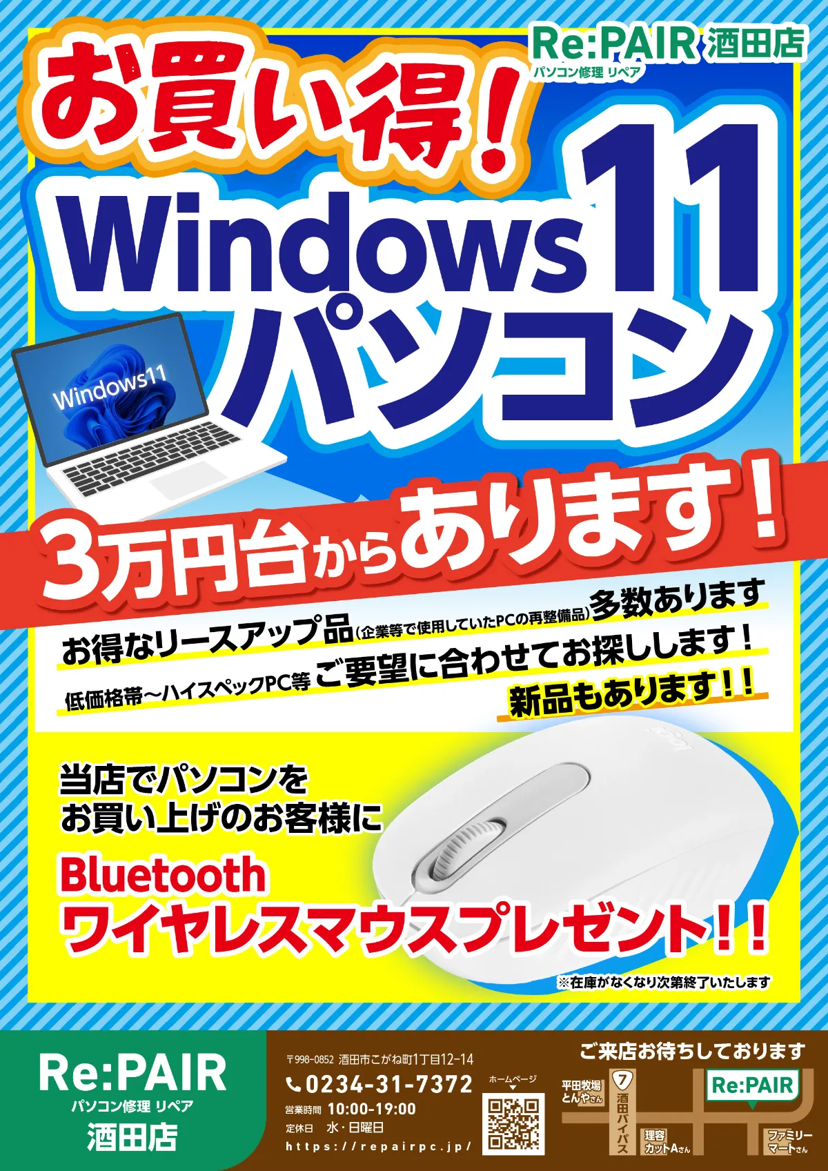 💻リペア酒田店からのお知らせ