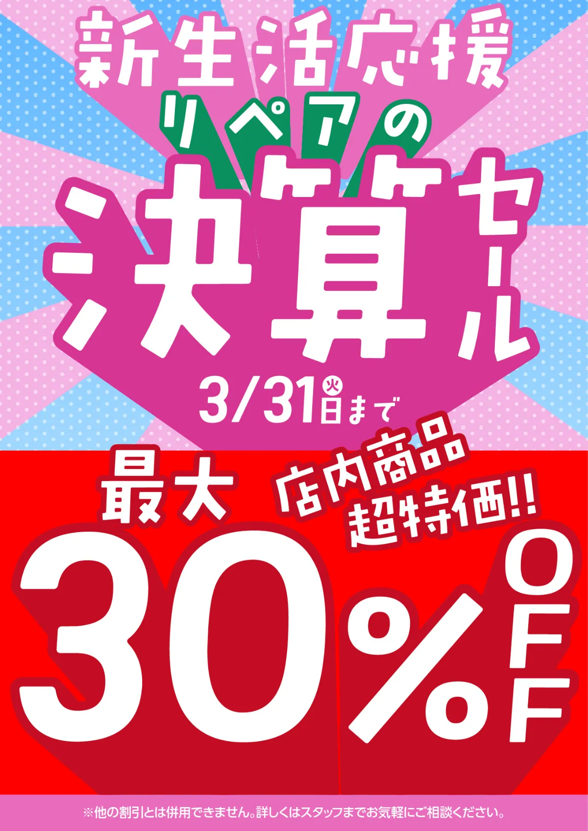 リペア酒田店では、今だけの特別価格で店内商品を大放出中です。