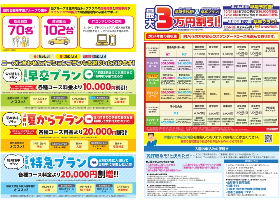 鶴岡自動車学園・関東自動車学校・鳥海自動車学園