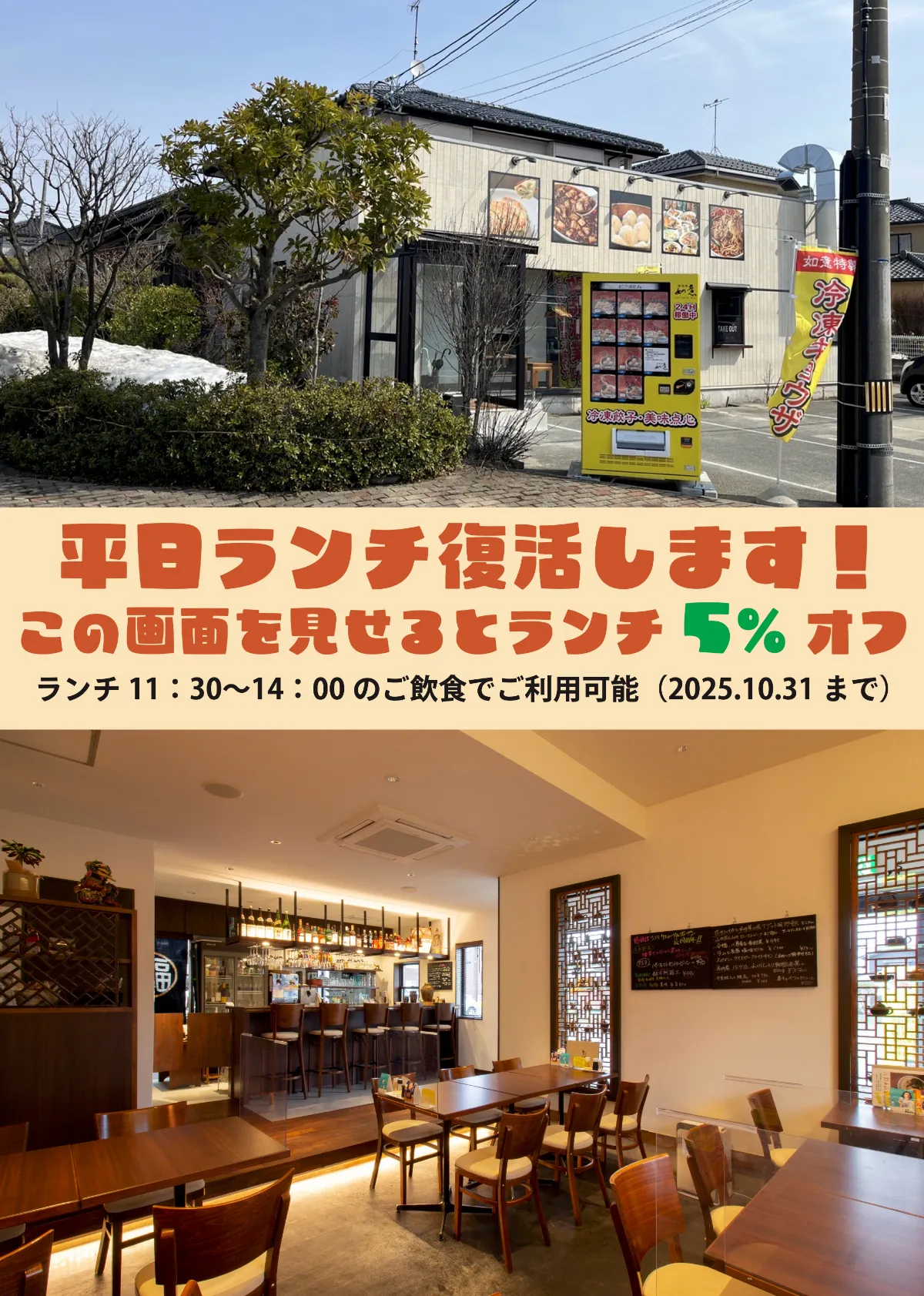 そして、たくさんのお客様より「ランチの復活」の要望が多数寄せられ、このたび、1年半ぶりに、新しいスタッフとの出会いのおかげで平日ランチが再開!