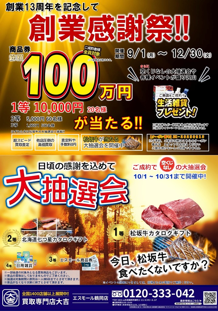 【創業13年記念100万円チャレンジ!創業感謝祭】
