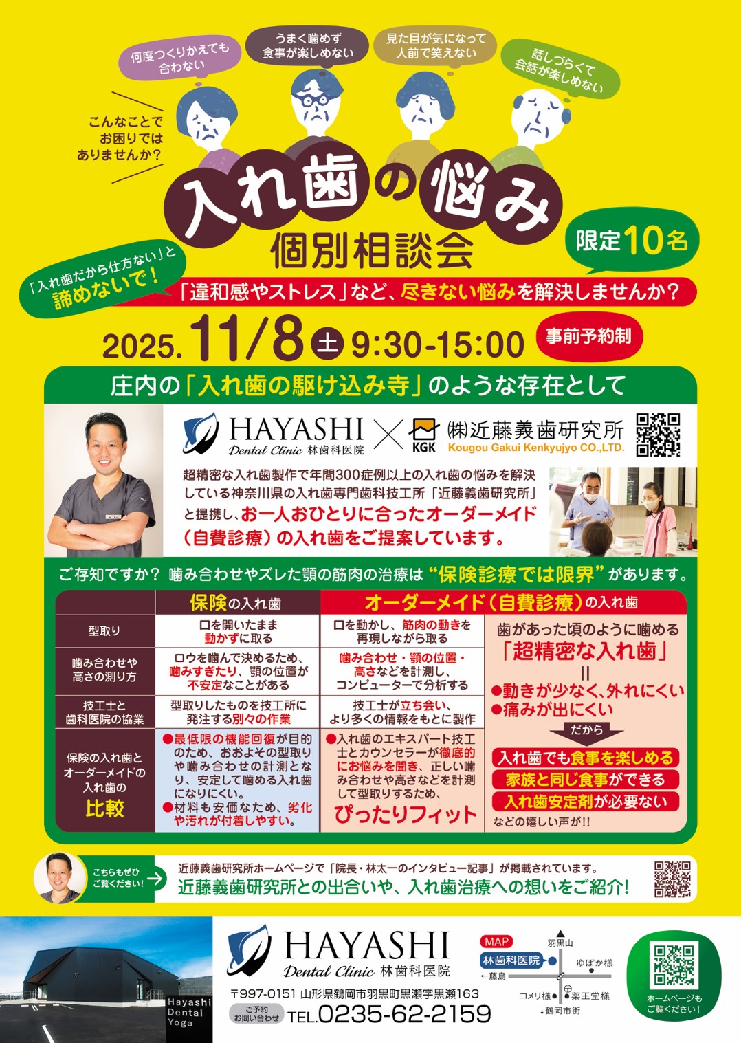 そんな悩みを抱えている方に向けて、林歯科医院では 完全予約制・限定10名 の「入れ歯相談会」を開催しています。
