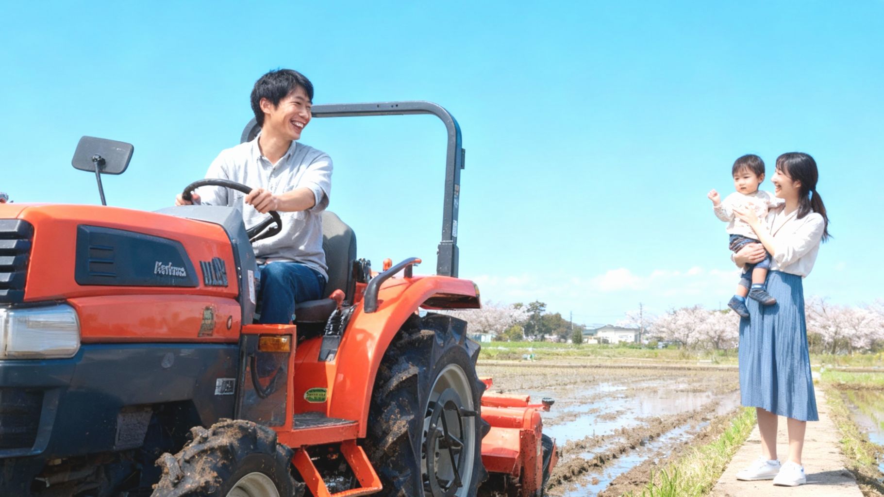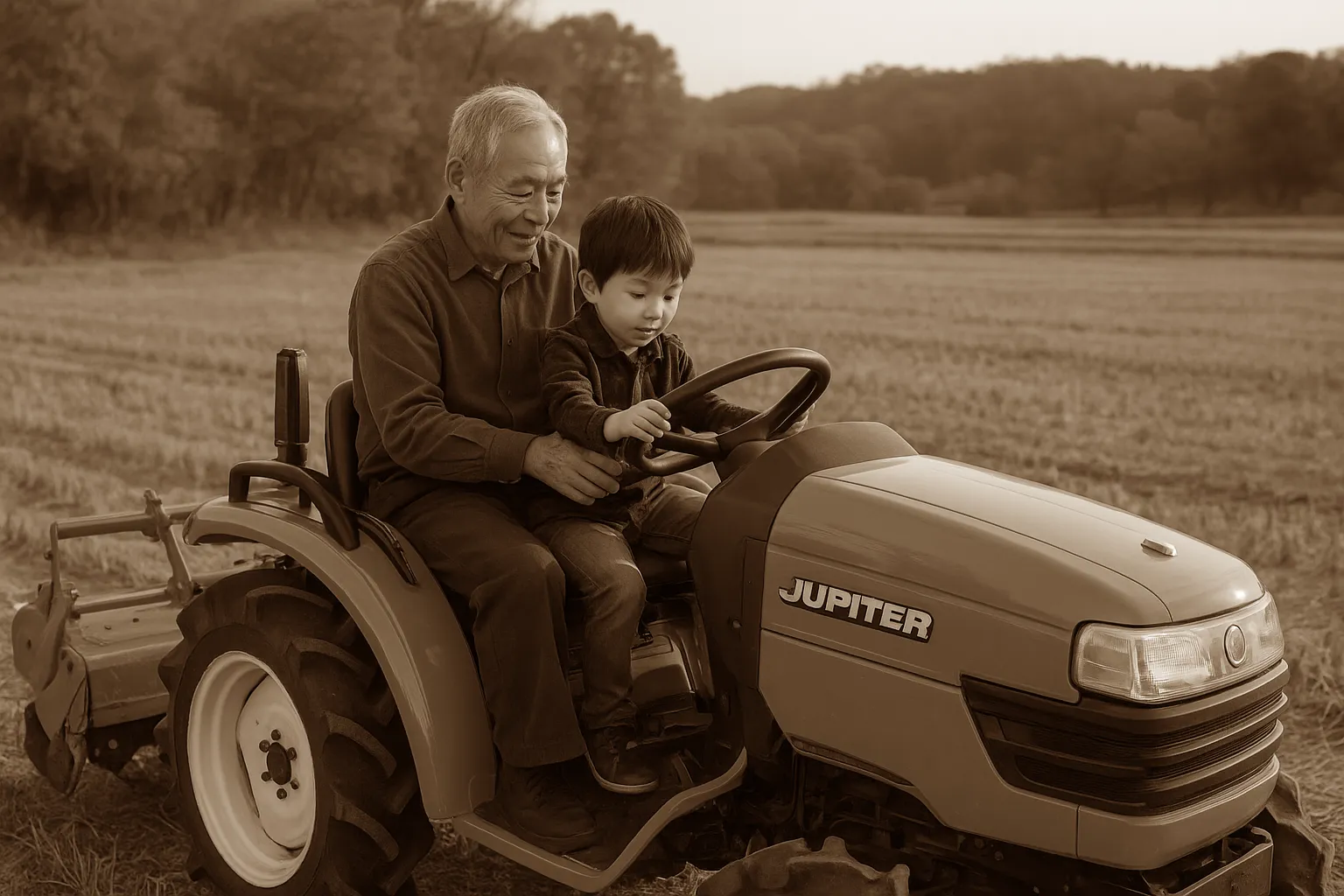 「おじいちゃんのトラクター、まだ田んぼで頑張ってるよ。」
