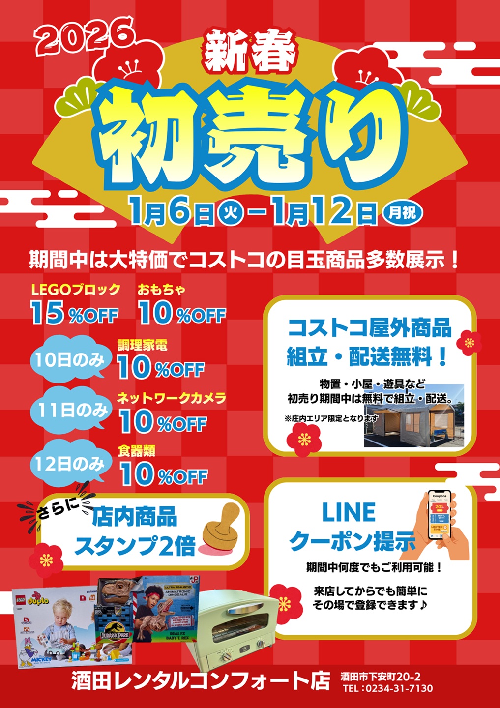 酒田レンタル株式会社コンフォート店からのお知らせ