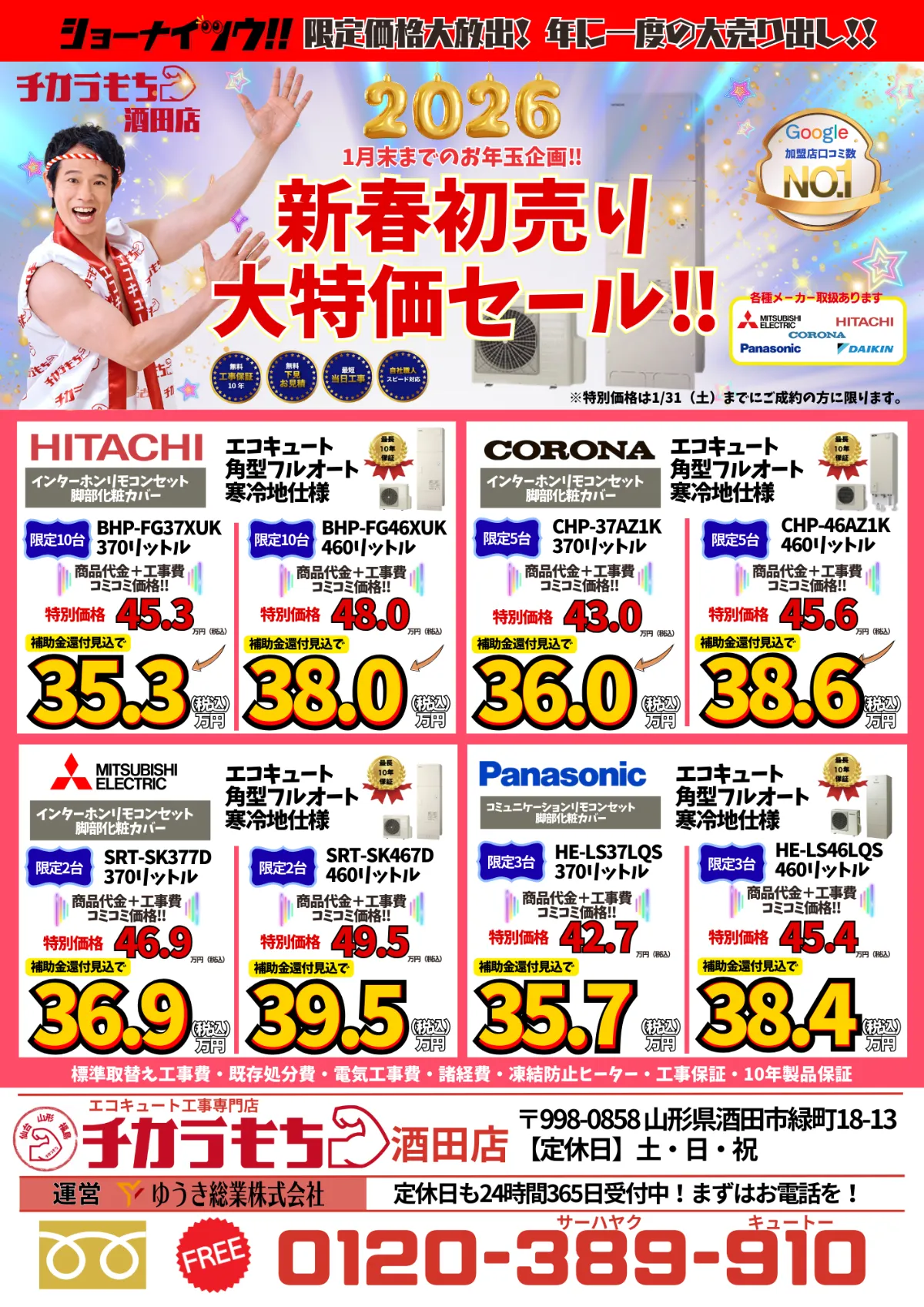 ✅ 各メーカーのエコキュートを新春特価でご用意