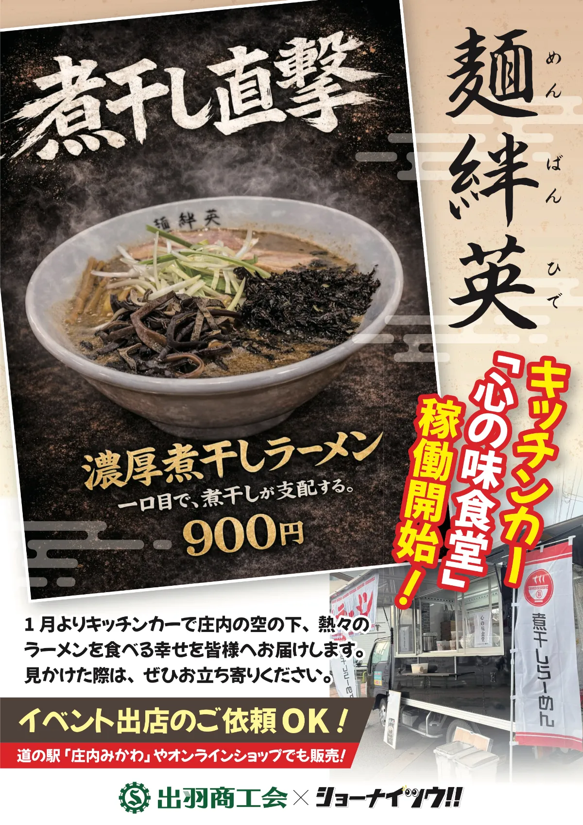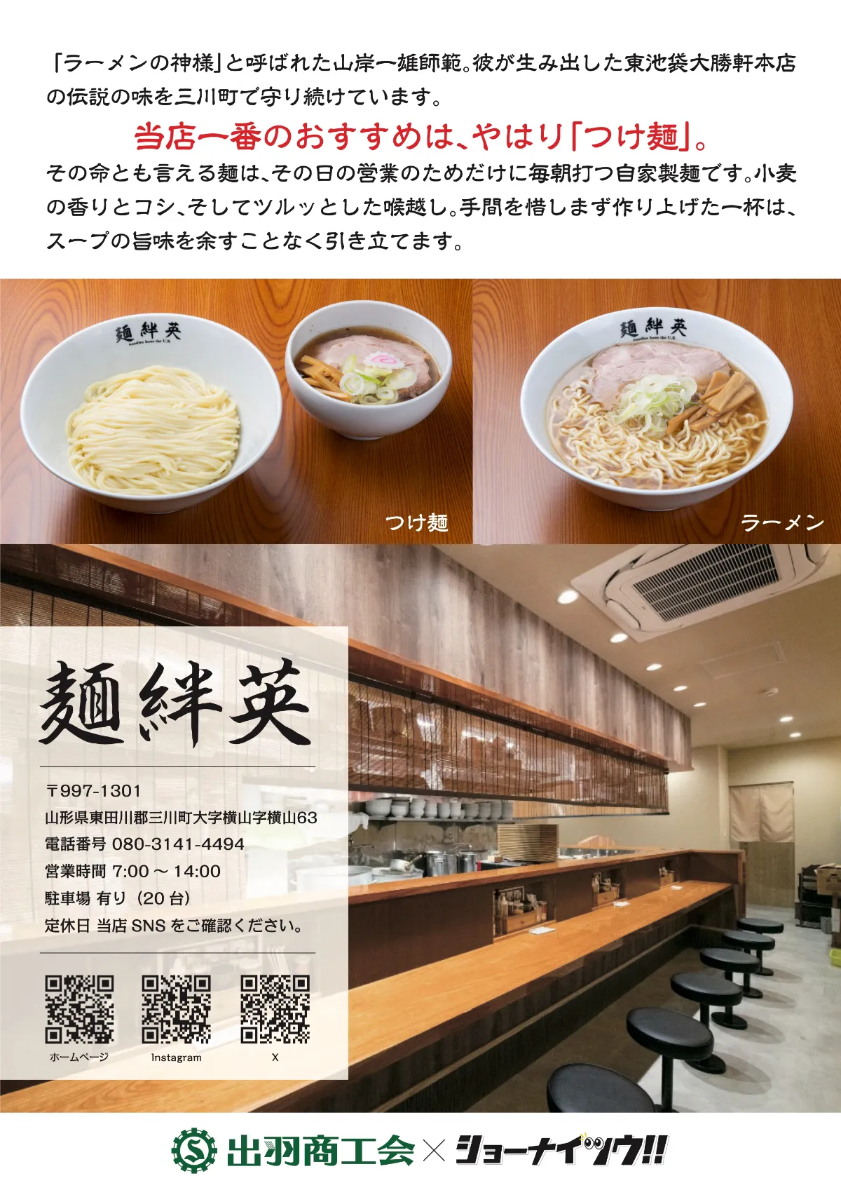庄内の空の下、熱々のラーメンを食べる幸せを皆様へお届けします。